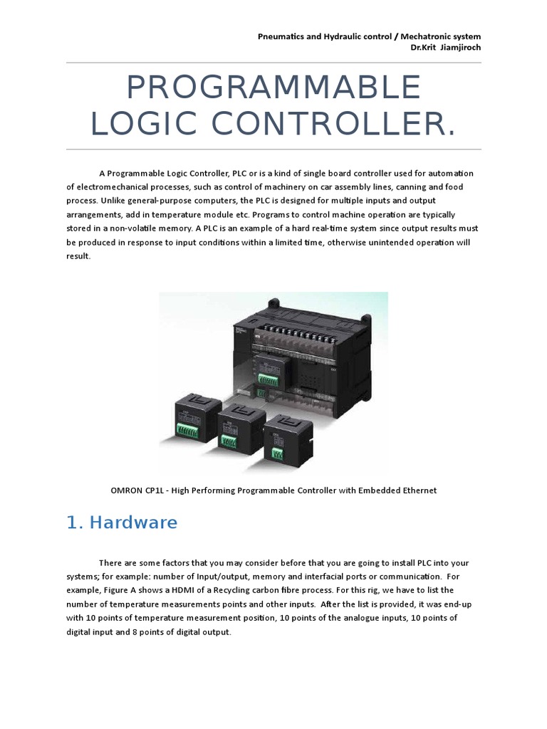 PLC Programmable Logic Controller Hardware Components PLC Hardware What Is Programmable Logic Controller Pdf Welcome to module 24, which covers programmable logic controllers, or plcs. A programmable logic controller (plc) is a specialized programmable device which is used to control machines and processes. The decisions are made based on the statuses of inputs and outputs and the ladder logic program that is being executed. Programmable logic controllers provides a comprehensive introduction to plcs and. What Is Programmable Logic Controller Pdf.